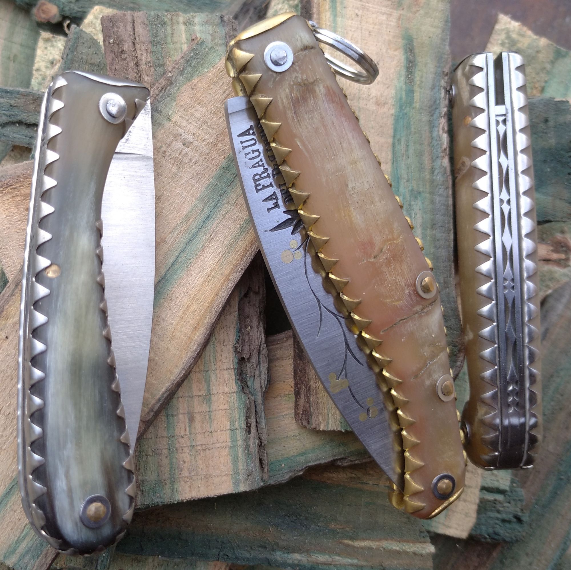 Decoración antaño muy usada en el Pirineo que además de decorar protege de golpes los laterales del mango, justamente la parte más delicada. Se usaba especialmente en la navaja gambeta, aunque queda muy bien en cualquier modelo. Podemos encontrar excepcionales ejemplos en antiguas navajas pirenaicas, las cuales hemos tomado de referencia.